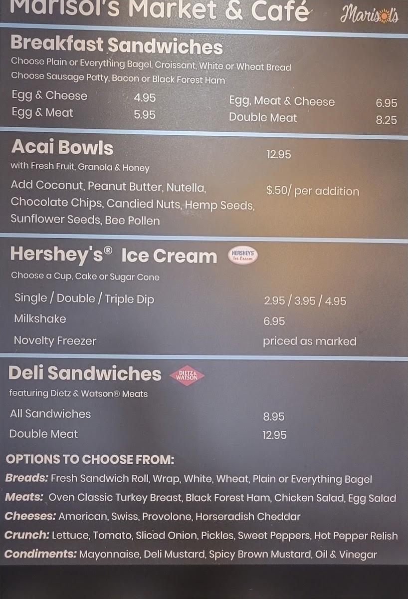 If you’re craving a cozy spot with a welcoming atmosphere and delicious food, Marisol's Market & Cafe Menu has you covered. Located at 23 Fountain Dr W in Ocean City, MD, this charming cafe serves up a variety of fresh, flavorful dishes perfect for any time of day. Whether you’re in the mood for a light breakfast, a hearty lunch, or something in between, you’ll find plenty of options to satisfy your taste buds.